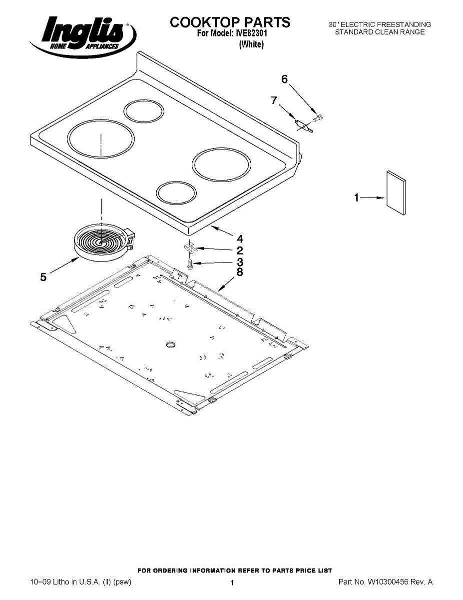 White porcelain and black glass cooktop assembly for your range. Replaces cracked, chipped, or damaged cooktops. Includes glass surface and frame.