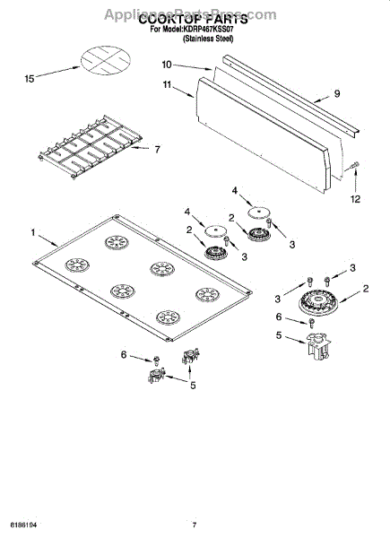 Parts for Kitchenaid KDRP467KSS07: 06 - Cooktop Parts