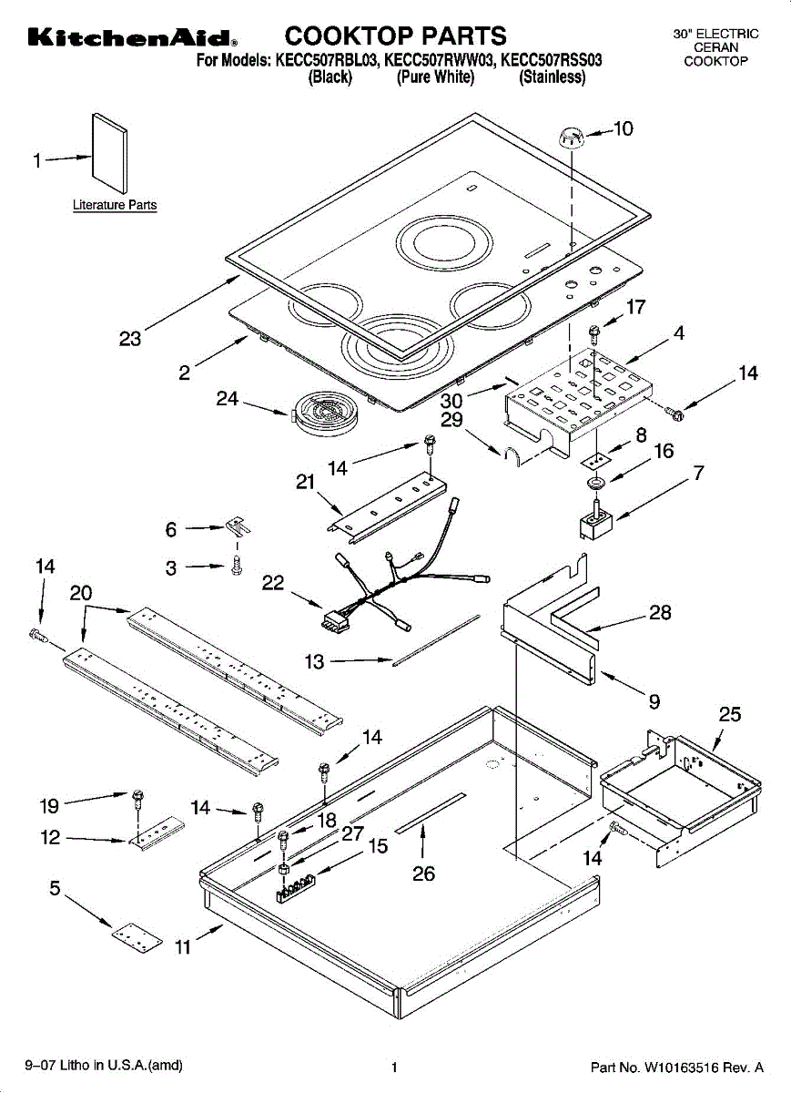 Decorative frame top trim for cooktops. Installs around the perimeter of the glass surface. Replace if cracked, chipped, discolored, or missing.