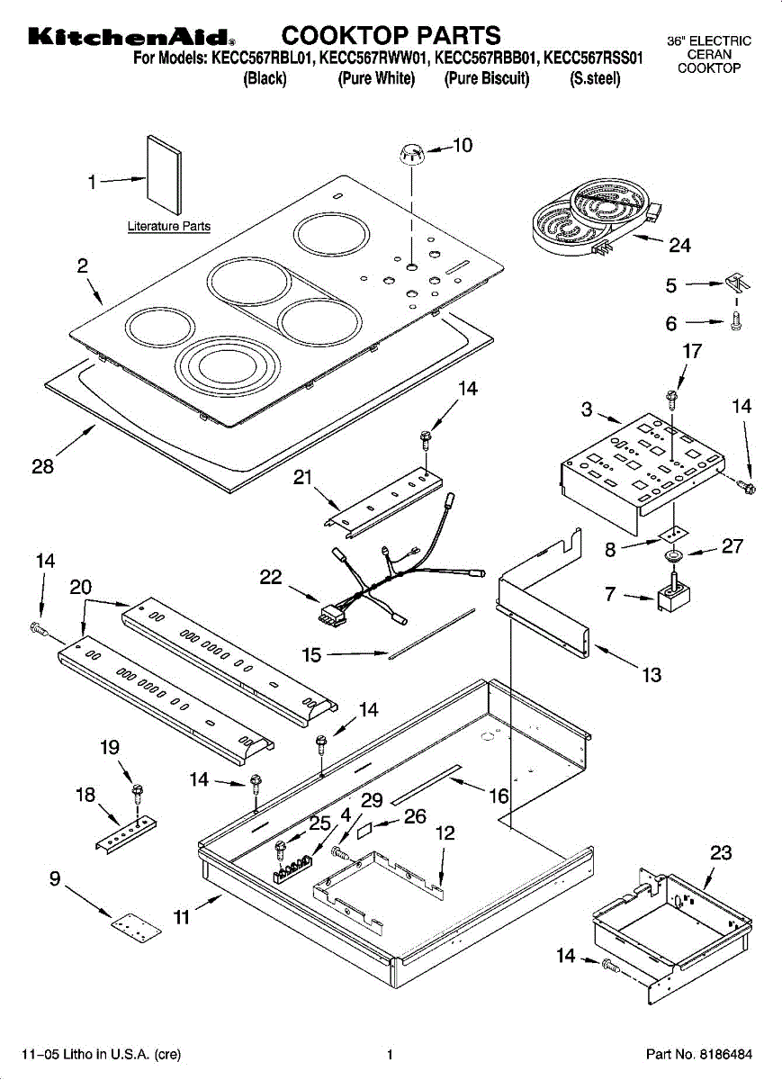 Hardware kit with screws and brackets to secure cooktop components. Replaces worn, missing, or damaged mounting fasteners for proper fit and stability.