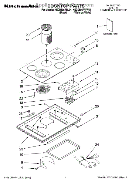 Parts for Kitchenaid KECD806RBL04: 01 - Cooktop Parts