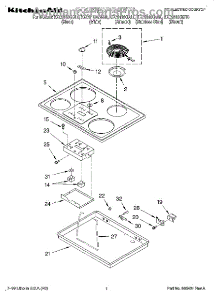 This infinite switch controls power to a cooktop surface element, allowing precise low-to-high heat settings. Replace it if a burner won't heat, stays on high, or won't shut off when the knob is turned to OFF. What it does: