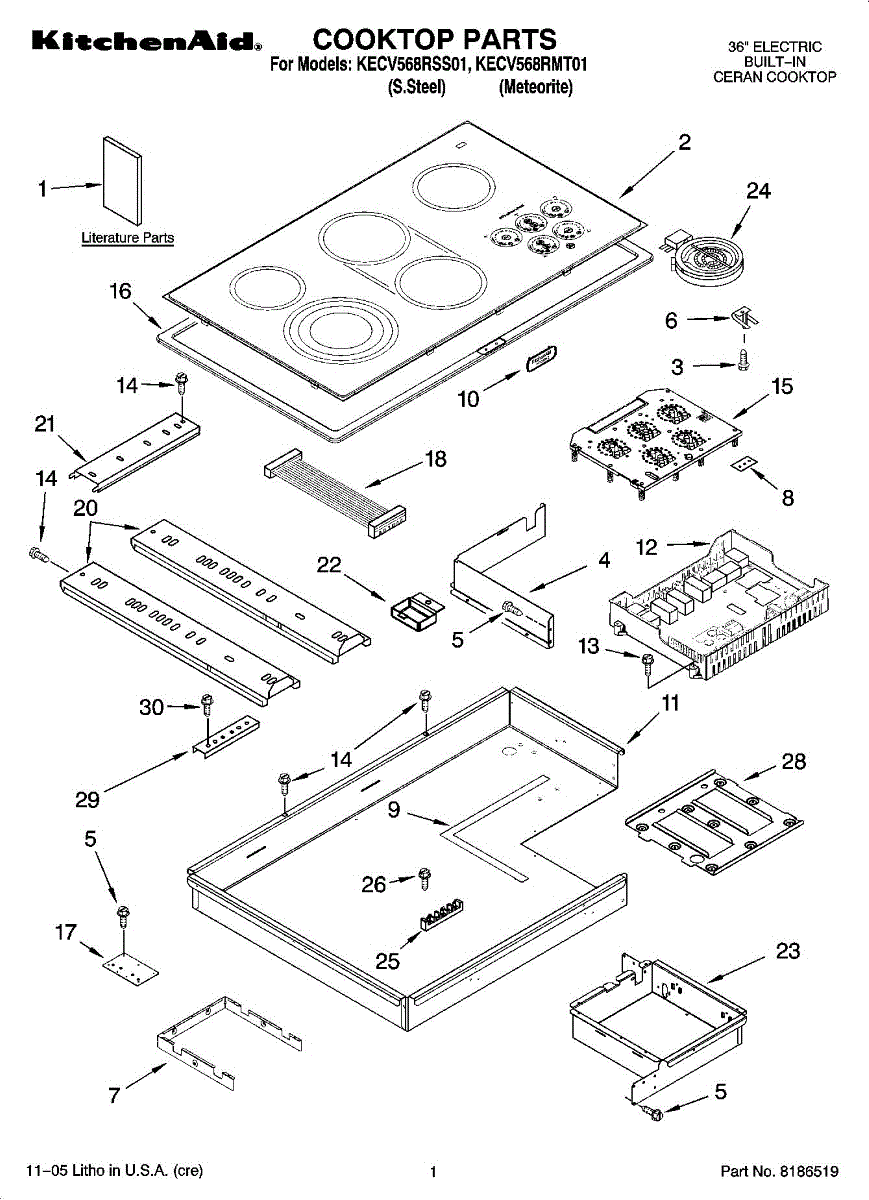 Hardware kit with screws and brackets to secure cooktop components. Replaces worn, missing, or damaged mounting fasteners for proper fit and stability.