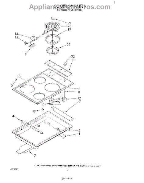 Parts for Kitchenaid KEDS100VWH3: 02 - Cooktop Parts