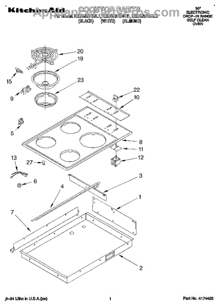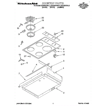 Parts for Kitchenaid KEDS207BWH1: 01 - Cooktop Parts
