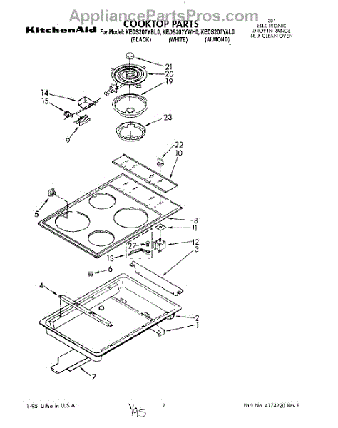 Parts for Kitchenaid KEDS207YWH0: 01 - Cooktop Parts