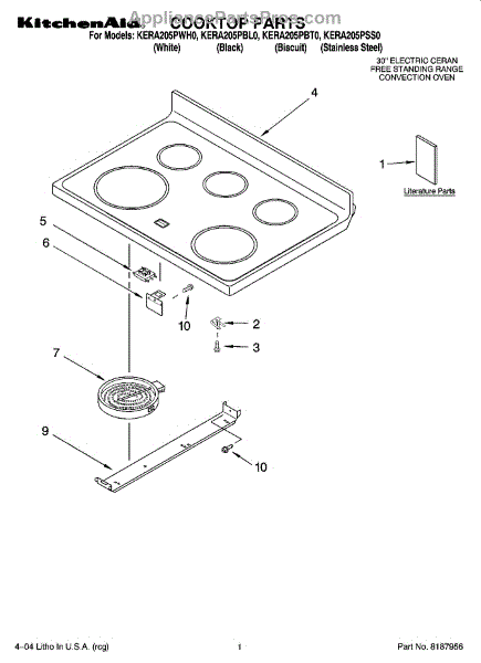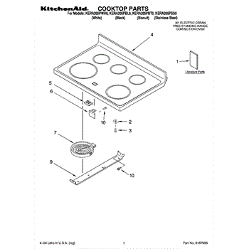 Parts for Kitchenaid KERA205PBL0: 01 - Cooktop Parts