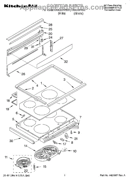 Parts for Kitchenaid KERC607EAL1: 01 - Cooktop Parts