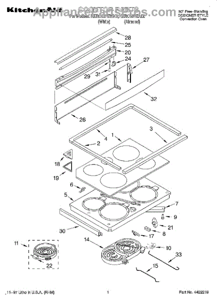 Parts for Kitchenaid KERC607EAL5: 01 - Cooktop Parts