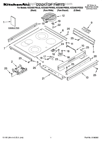 Parts for Kitchenaid KESA907PBL02: 01 - Cooktop Parts