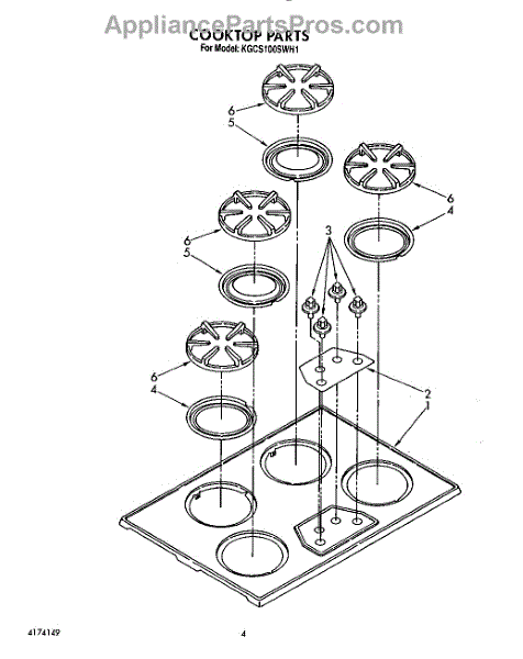 Parts for Kitchenaid KGCS100SWH1: 03 - Cooktop Parts