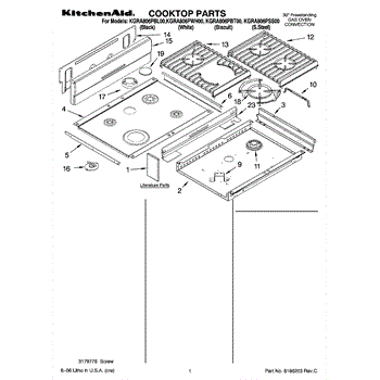 Parts for Kitchenaid KGRA806PBT00: 01 - Cooktop Parts