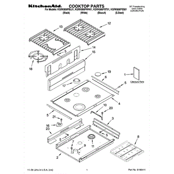 Parts for Kitchenaid KGRK806PBT01: 01 - Cooktop Parts