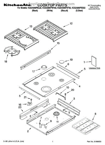 Parts for Kitchenaid KGSA906PBL02: 01 - Cooktop Parts