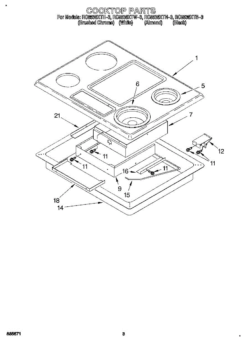 Drip pan installs under range burners to catch spills and grease. Replace if cracked, warped, corroded, or heavily stained for a clean cooktop.