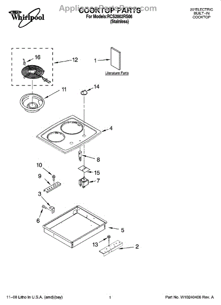 Note: For 6-inch drip bowl order W10196406RW