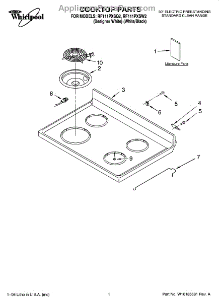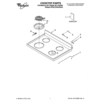 Parts for Whirlpool RF111PXSQ2: 01 - Cooktop Parts