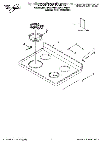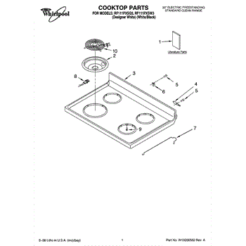 Parts for Whirlpool RF111PXSQ3: 01 - Cooktop Parts