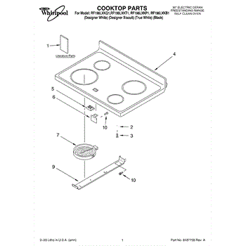 Parts for Whirlpool RF196LXKT1: 01 - Cooktop Parts