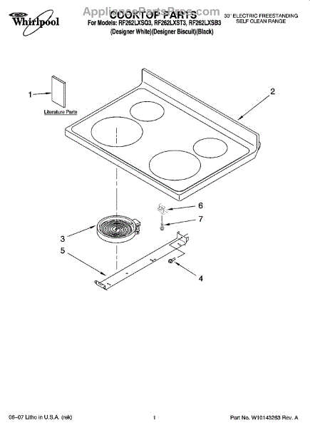 Parts for Whirlpool RF262LXST3: 01 - Cooktop Parts