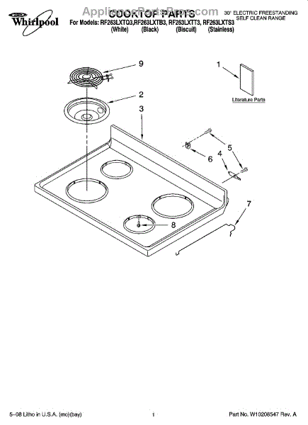 Parts for Whirlpool RF263LXTQ3: 01 - Cooktop Parts