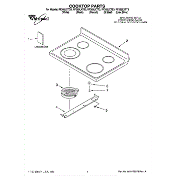 Parts for Whirlpool RF265LXTQ3: 01 - Cooktop Parts