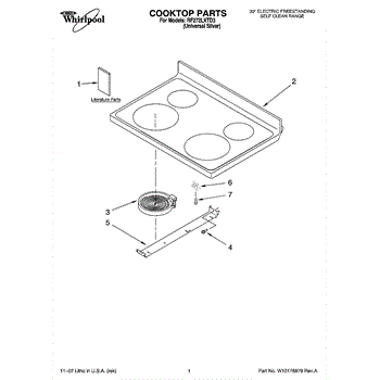 The Cooktop is an OEM part for Whirlpool ranges. This part serves as the cooking surface where pots and pans are placed for heating and cooking.