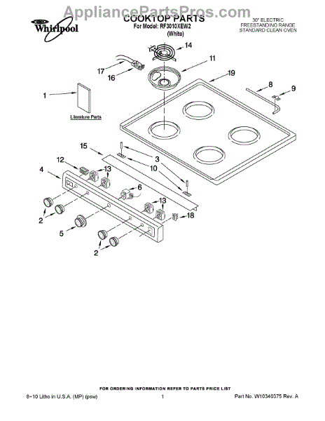 The Stove Top Drip Pan is an OEM replacement part for Whirlpool ranges. It is the shallow metal pan located below the stove burner elements that collect grease and food particles. The drip pan helps direct spills and drips away from the burner area to the bottom drawer for easy cleanup. Symptoms of a bad drip pan include: