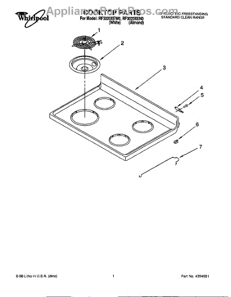 Note: For 6-inch drip bowl order W10196406RW