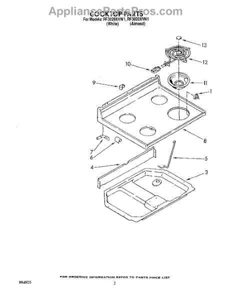 Parts for Whirlpool RF3020XVW1: 02 - Cooktop Parts