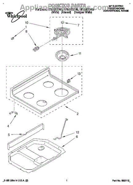 Parts for Whirlpool RF302BXDW0: 01 - Cooktop, Literature Parts
