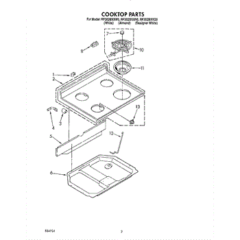 Parts for Whirlpool RF302BXXQ0: 02 - Cooktop Parts