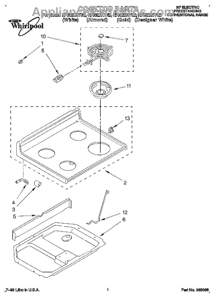 Parts for Whirlpool RF302BXYG2: 01 - Cooktop, Literature Parts