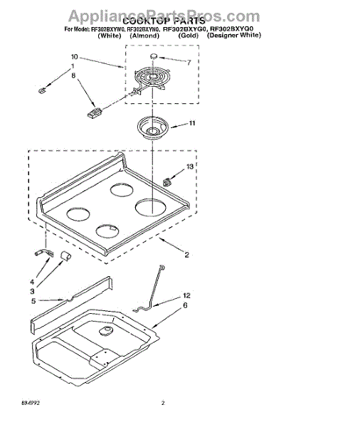 Parts for Whirlpool RF302BXYW0: 02 - Cooktop, Lit / Optional Parts
