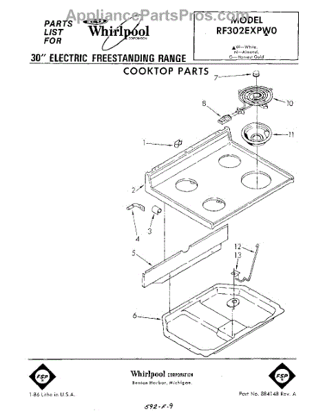 Parts for Whirlpool RF302EXPW0: 01 - Cooktop Parts