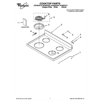 Parts for Whirlpool RF303PXKQ1: 01 - Cooktop Parts