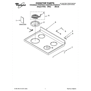 Parts for Whirlpool RF303PXKQ3: 01 - Cooktop Parts