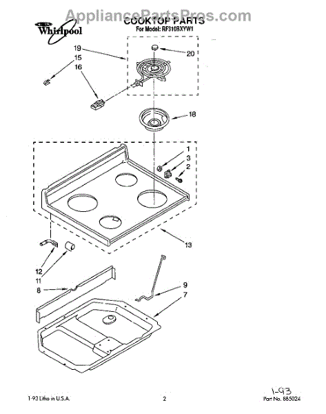 Parts for Whirlpool RF310BXYW1: 01 - Cooktop Parts