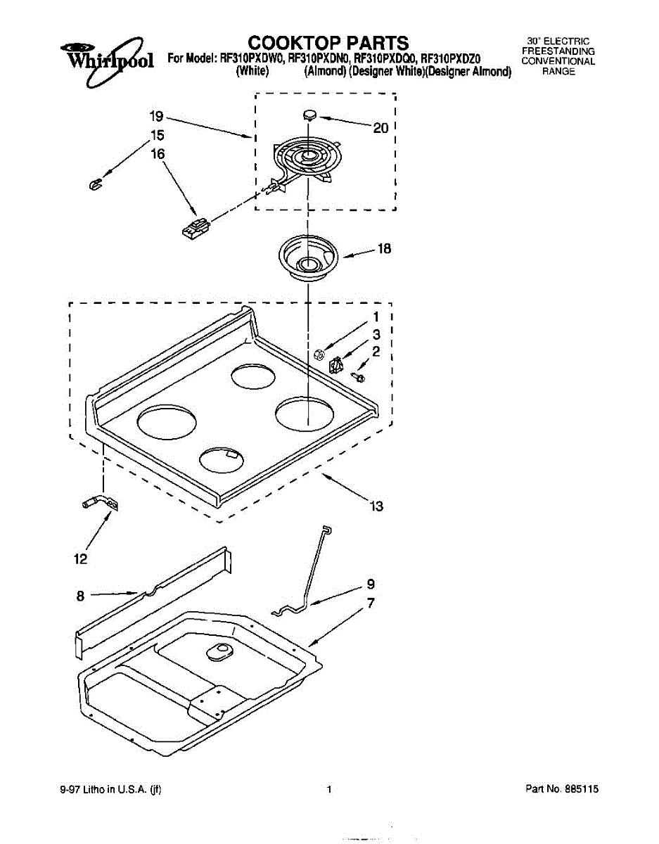 Drip pan installs beneath burner elements to catch spills and crumbs. Replace if cracked, rusted, stained, or worn. Keeps your stovetop clean.