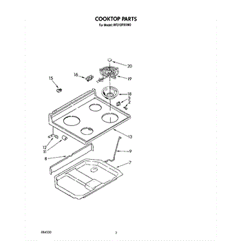 Parts for Whirlpool RF310PXVN0: 02 - Cooktop Parts