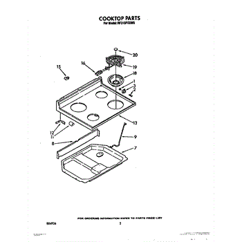 Parts for Whirlpool RF310PXXW0: 02 - Cooktop Parts