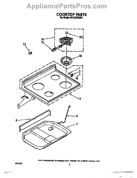 Parts for Whirlpool RF310PXXW1: 02 - Cooktop Parts
