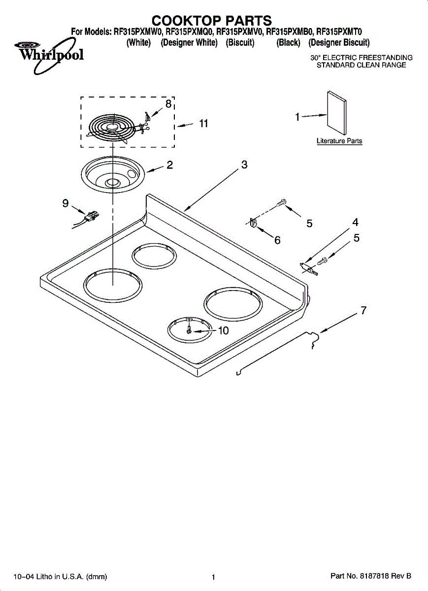 Note: For 6-inch drip bowl order W10196406RW