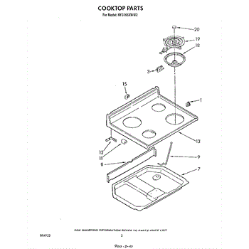 Parts for Whirlpool RF3165XWW2: 02 - Cooktop Parts
