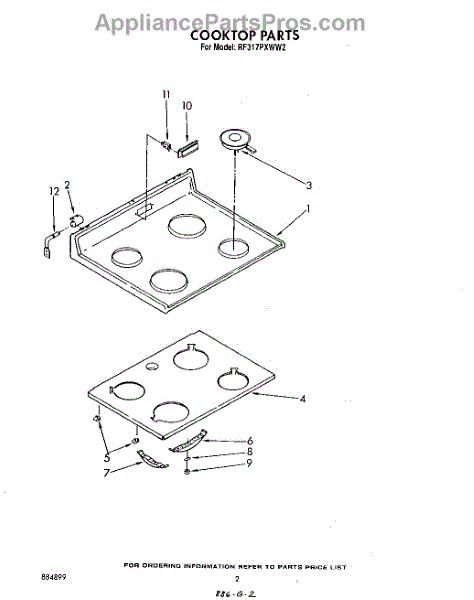 Parts for Whirlpool RF317PXWW2: 02 - Cooktop Parts