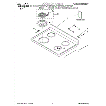 Parts for Whirlpool RF325PXGQ1: 01 - Cooktop, Literature Parts
