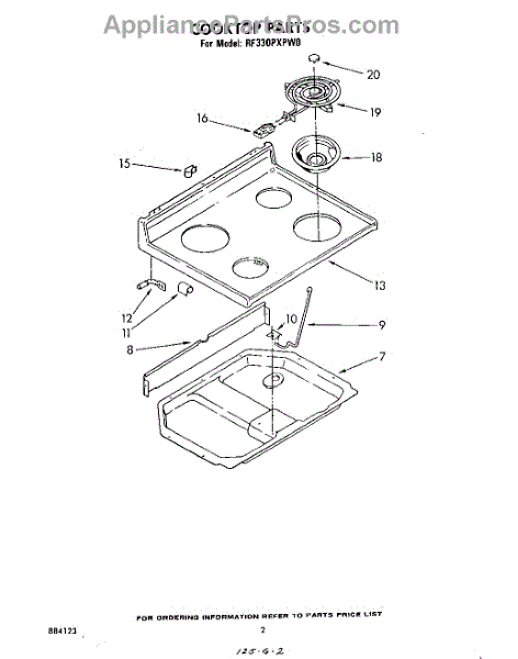 Parts for Whirlpool RF330PXPW0: 02 - Cooktop Parts