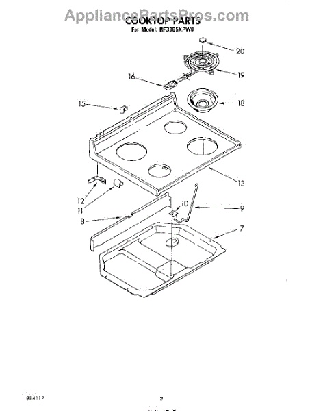 Parts for Whirlpool RF3365XPW0: 02 - Cooktop Parts
