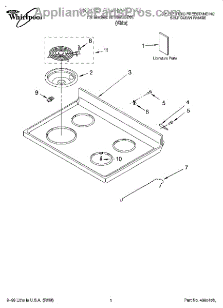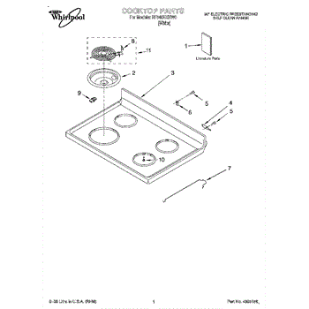 Parts for Whirlpool RF340BXHW0: 01 - Cooktop, Literature Parts