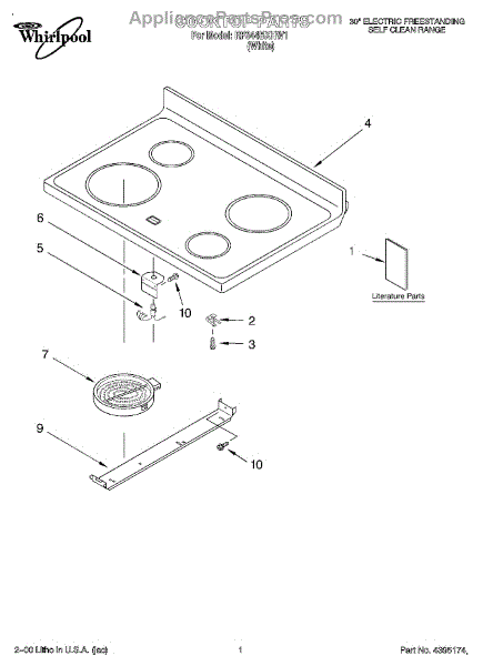 Parts for Whirlpool RF344BXHW1: 01 - Cooktop, Literature Parts